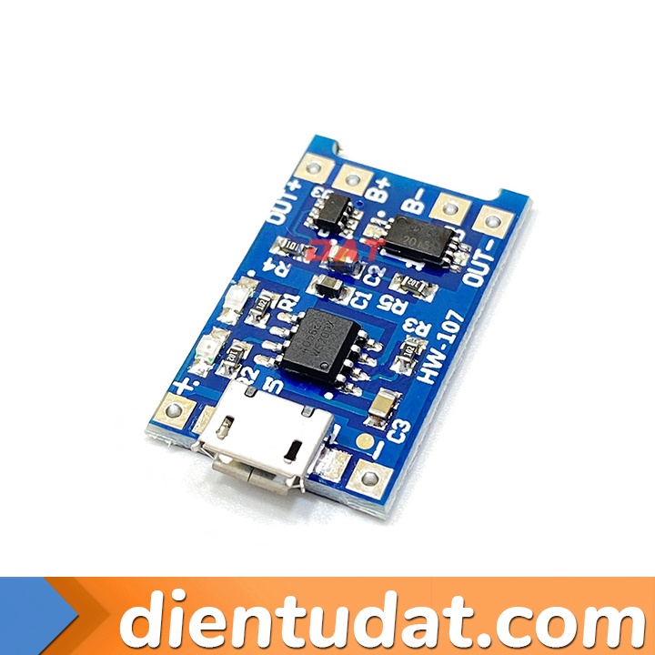 Mạch sử dụng chip sạc TP4056 với dòng điện ngõ ra 1A. Ngõ vào sử dụng điện áp 5V thông qua cổng Micro USB phổ biến trên thị trường.Thông số kỹ thuật: