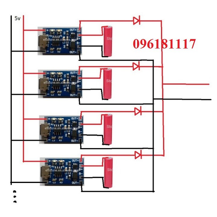 Mạch sạc pin lithium 18650 có bảo vệ pin