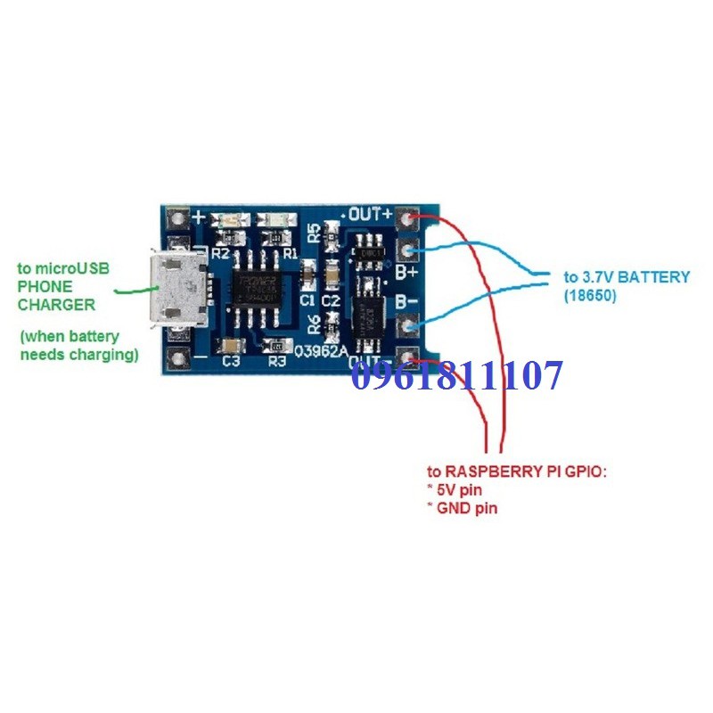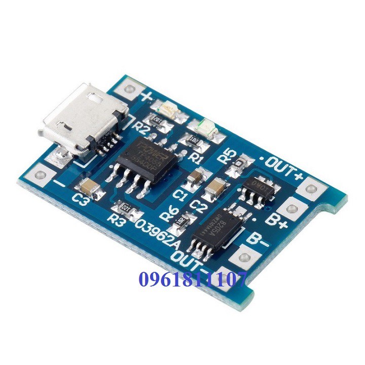 Mạch sạc pin lithium 18650 1A cổng micro USB có bảo vệ pin
