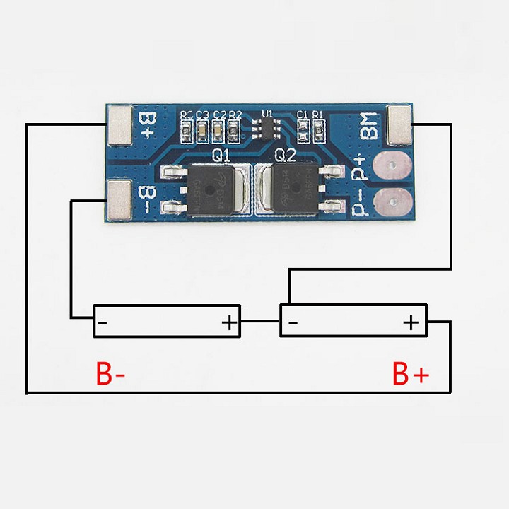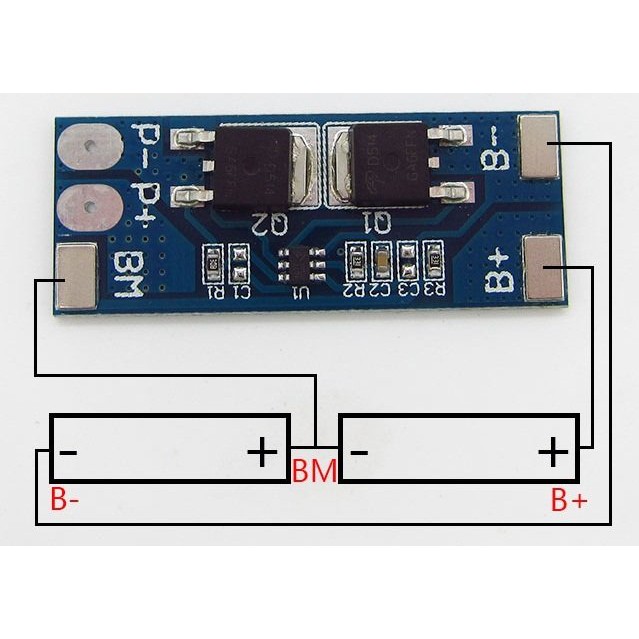 Mạch sạc và bảo vệ pin nối tiếp 2 cell 18650 được sử dụng để sạc 2 cell pin 18650 mắc nối tiếp và bảo vệ pin chống quá tải khi sử dụng chạy tải, mạch có chức năng sạc riêng rẽ cho từng cell (balance charging), ngắt khi đầy, bảo vệ chập nguồn, quá áp và pin dưới áp quy định.Mạch sạc và bảo vệ pin nối tiếp 2 cell 18650 có thiết kế, chất lượng gia công và linh kiện rất tốt, phù hợp trong các thiết kế cần có mạch quản lý pin, sạc.