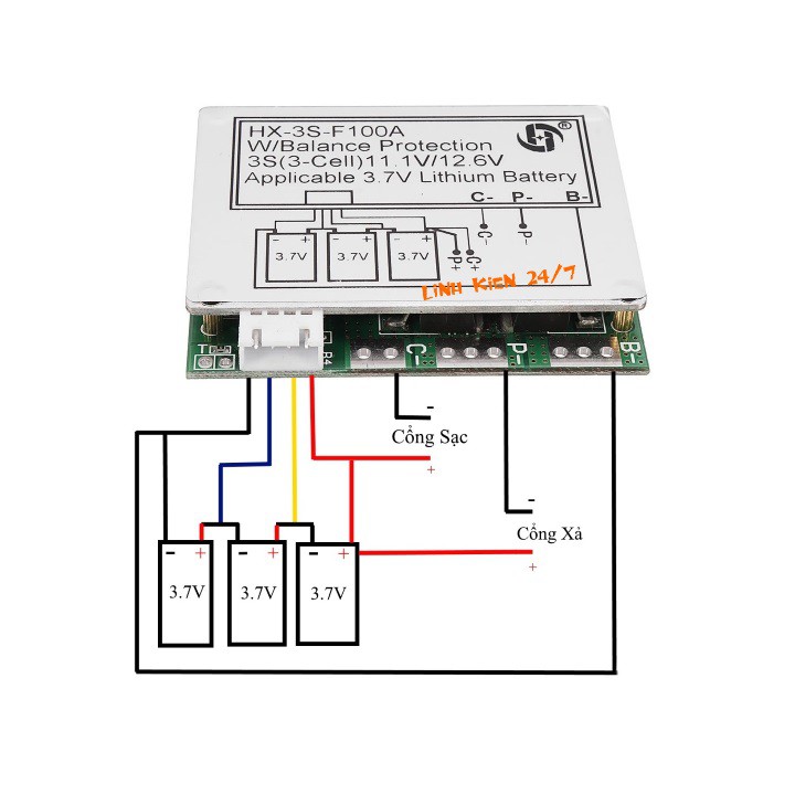- Hàn theo thứ tự từ B- (0V) B1(3.7V) B2 (7.4V) và B+ (11.1V).