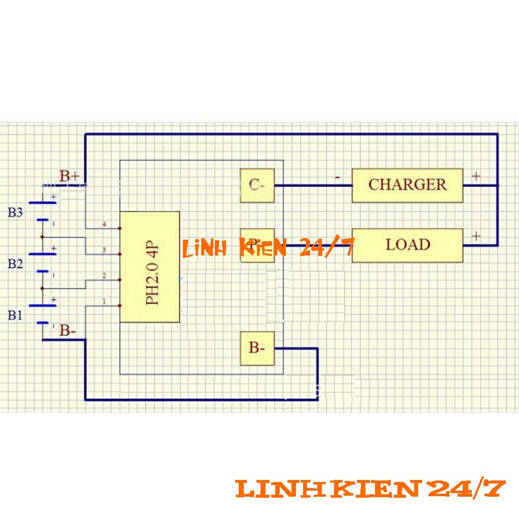 - Chức năng: Sạc cân bằng và bảo vệ cell Li-ion, dùng trong pin máy khoan, máy bắt vít, máy cưa,... có mức điện thế từ 9.6V 10.8V 11.1V 12V.