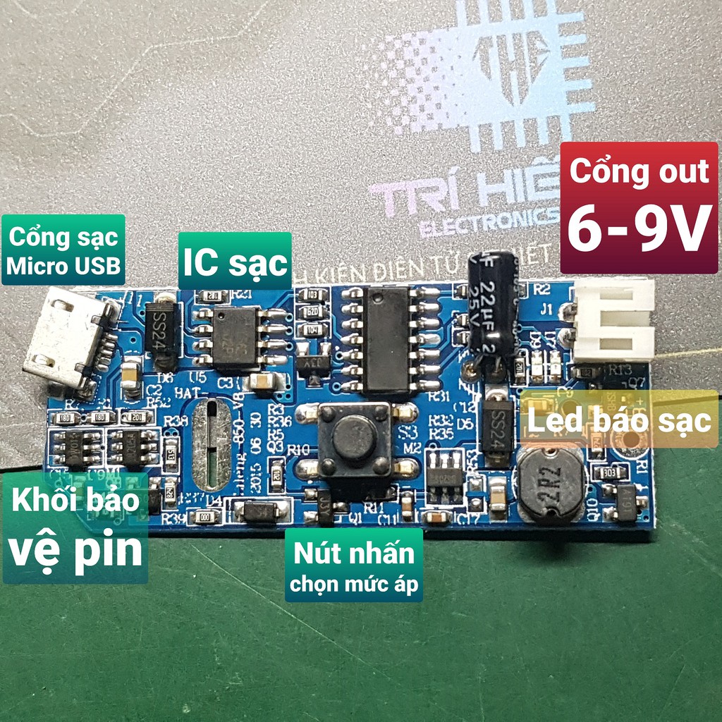 Thiết Bị Điện Gia Dụng > Pin || Mạch sạc và bảo vệ pin 1s 3.7V kiêm boost tăng áp 6V 9VCòn hàng