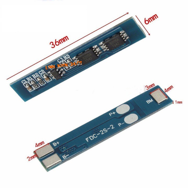Mạch sạc và bảo vệ pin nối tiếp 2 cell 18650 có thiết kế, chất lượng gia công và linh kiện rất tốt, phù hợp trong các thiết kế cần có mạch quản lý pin, sạc.