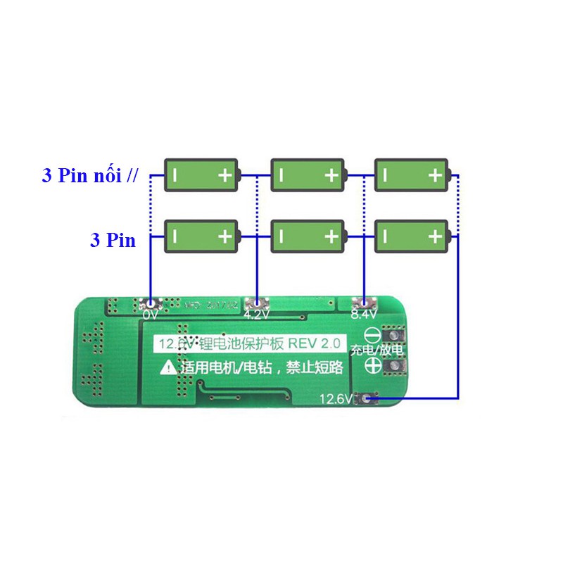 - Điện áp sạc: 12,6V-13V