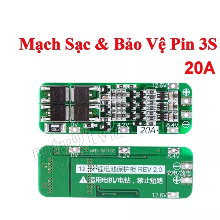 Mạch sạc xả 3 cell pin 18650 12.6V dòng xả 10A, 20A có bảo vệĐIỆN TỬ NGUYỄN HIỀN