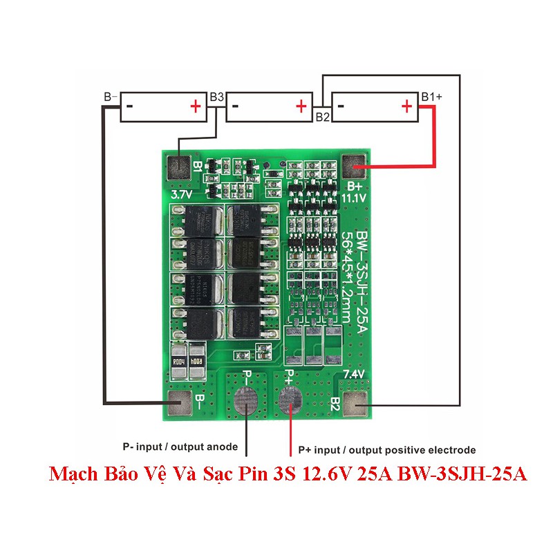 Mạch sạc xả bảo vệ Pin 3S 11.1V 12.6V 25A [HTE Quy Nhơn CN2]