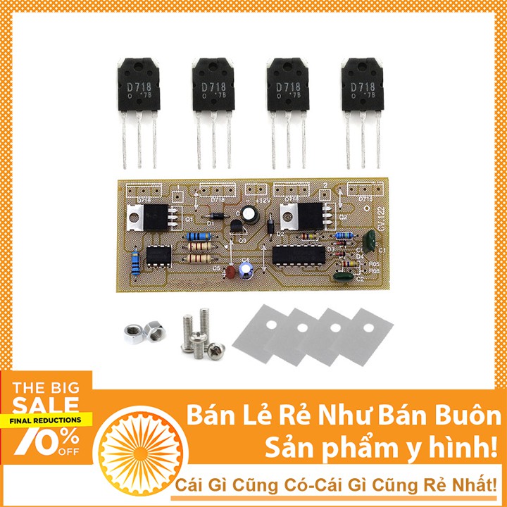 THÔNG SỐ KĨ THUẬT- Gồm 1 mạch tăng áp 12V lên 220V, 4 sò D718, tản nhiệt nhôm 8x10cm, 4 tấm cách điện D718, 4 vít 36M.
