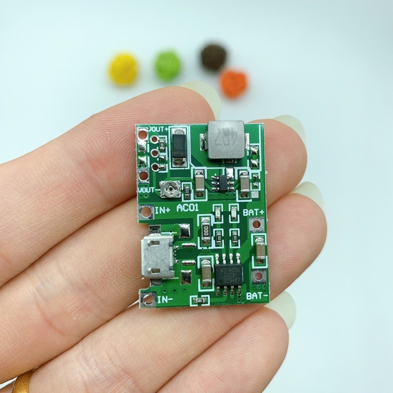 Mạch dùng sạc cho pin Li-ion và pin Li-Po 1S 3.7V - 4.2V tích hợp tăng áp 4.3V - 27V (qua biến trở điều chỉnh)- Mạch tích hợp mạch tăng áp 7W có thể điều chỉnh đến 27V. Mạch sử dụng IC TP4056, nhưng với mạch này không có chức năng bảo vệ pin, vì vậy người dùng khi thấy dấu hiệu sụt áp thì lấy pin ra sạc để tránh làm hỏng pin.