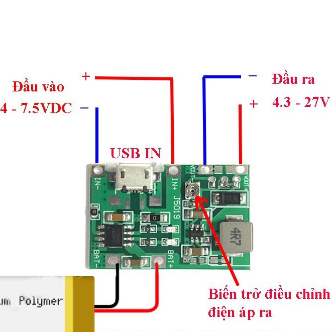 - Điện áp ra : 4.3 - 27VDC.