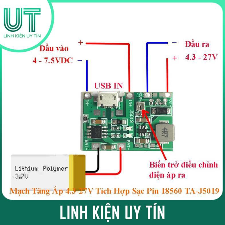 Thiết Bị Điện Gia Dụng > Pin || Mạch Tăng Áp 4.3-27V Tích Hợp Sạc Pin 18650 TA-J5019Còn hàng