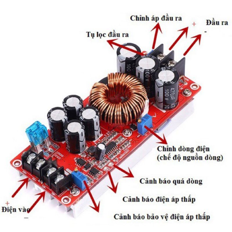 Giới thiệu Mạch tăng áp DC - DC 1200W. Ngõ vào 10-60VDC, Ngõ ra 12V-83VDC