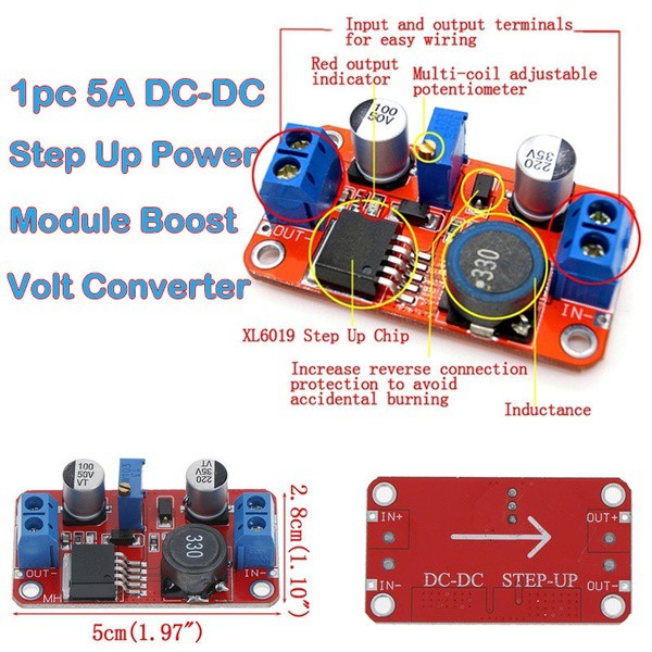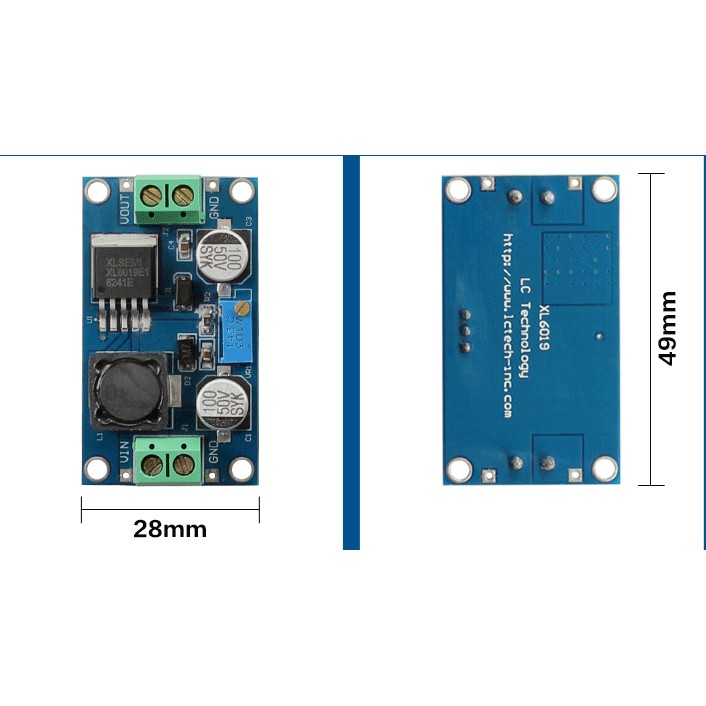 Mạch tăng áp XL6019 có chức năng nâng điện áp DC với ngõ vào từ 3 ~ 35VDC, ngõ ra có thể điều chỉnh bằng chiết áp từ 5 - 40VDC với dòng tải tối đa lên đến 4A