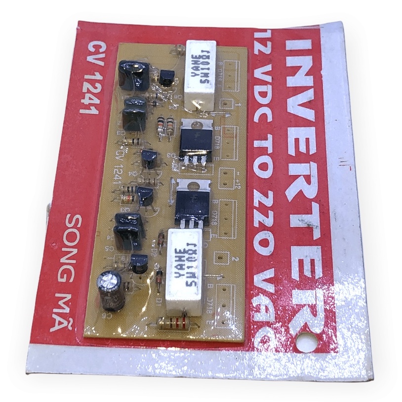 1. Thông tin về sản phẩm Mạch Tăng Áp Inverter 12VDC TO 220VAC CV121-CV122Mạch Tăng Áp Inverter 12VDC TO 220VAC CV121-CV122 được dùng để đổi điện 12VDC sang 220VAC. Bo được dùng với 2 cặp tranzitor D718 hoặc 2N3055 cho ra được 350W.