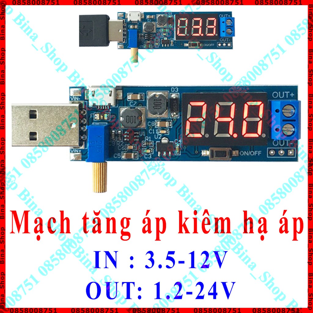 Mạch tăng áp kiêm giảm áp DC 3.5~12V ra 1.2~24V hỗ trợ USB và Micro USB- Đầu vào : cổng USB, micro USB, hỗ trợ thêm 2 chân hàn đầu vào VIn+ VIn-