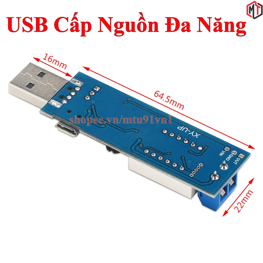 - Đầu vào : cổng USB, micro USB, hỗ trợ thêm 2 chân hàn đầu vào VIn+ VIn-