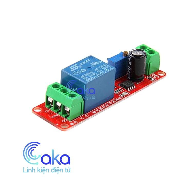 Mạch tạo thời gian trễ NE555Mạch tạo thời gian trễ NE555 sử dụng IC NE555 với thời gian trễ mặc định từ 0 - 10s được điều chỉnh bằng chiết áp. Ngõ ra của mạch là 3 chân của relay: chân chung(COM), thường đóng(NC), thường mở(NO) có thể điều khiển được tối đa điện áp 250VAC.