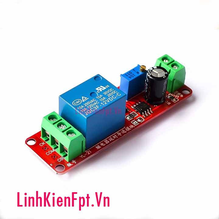 Mô tả sản phẩmMạch sử dụng IC NE555 với thời gian trễ mặc định từ 0 - 10s được điều chỉnh bằng chiết áp. Ngõ ra của mạch là 3 chân của relay: chân chung (COM), thường đóng (NC), thường mở (NO) có thể điều khiển được tối đa điện áp 250VAC.
