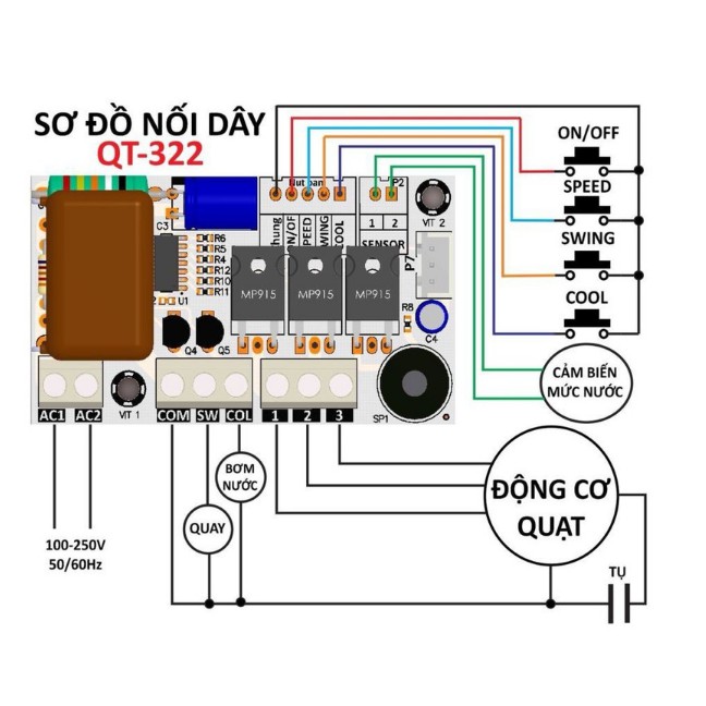 Giới thiệu Bộ mạch và điều khiển quạt phun sương, quạt điều hòa 220v 300W - QT 322,điều khiển quạt hơi nước ,quạt điều khiển từ xa