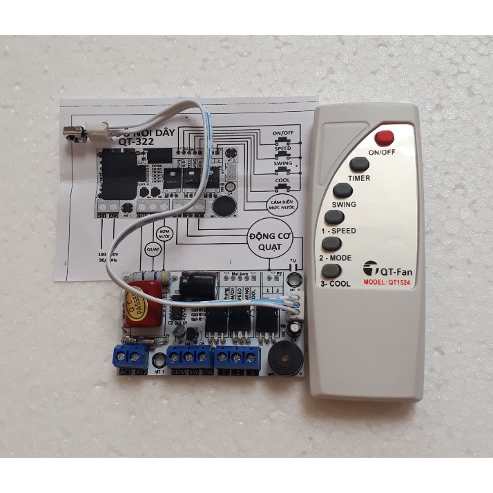 Thiết Bị Điện Gia Dụng > Thiết bị điều khiển từ xa || Bộ mạch và điều khiển quạt phun sương, quạt điều hòa 220v 300W - QT 322,điều khiển quạt hơi nước ,quạt điều khiển từ xaCòn hàng