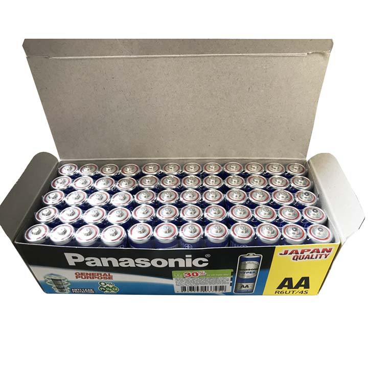 Pin AA Panasonic R6UT/4S Xanh - 60 Viên/hộp👉 Pin AA Panasonic R6UT/4S cung cấp điện áp ổn định ở mức 1.5V với thời gian sử dụng và chất lượng vượt trội hơn so với các loại pin thường.