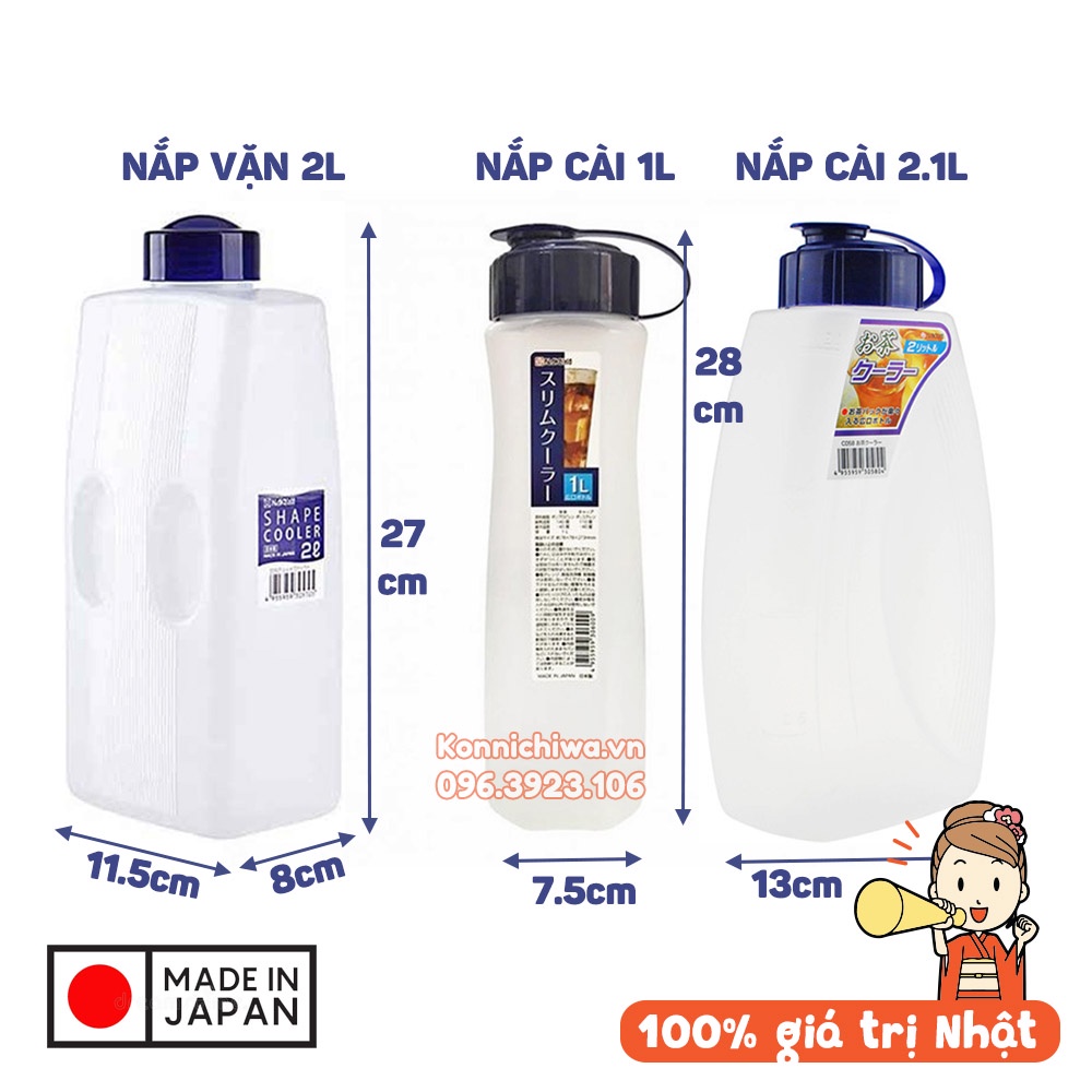 Bình nước Nhật Bản có thể dùng để đựng nước lọc, nước ép trái cây... Rất tiện lợi cho những chuyến du lịch, dã ngoại, hoặc trữ ở ngăn mát tủ lạnh, bình nhỏ gọn kèm cốc đựng rất thích hợp cho bé hoặc người lớn mang đi học đi làmSản phẩm nhựa Nhật Bản luôn chiếm trọn lòng tin người dùng nhờ các ưu điểm