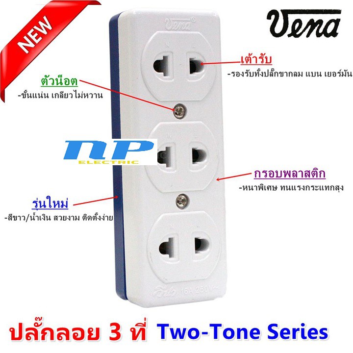 Thiết Bị Điện Gia Dụng > Mạch điện & Phụ tùng > Ổ cắm điện & Dây nối || [MADE IN THAILAND] Ổ CẮM 3 LỖ VENA THÁI - SIZE LCòn hàng
