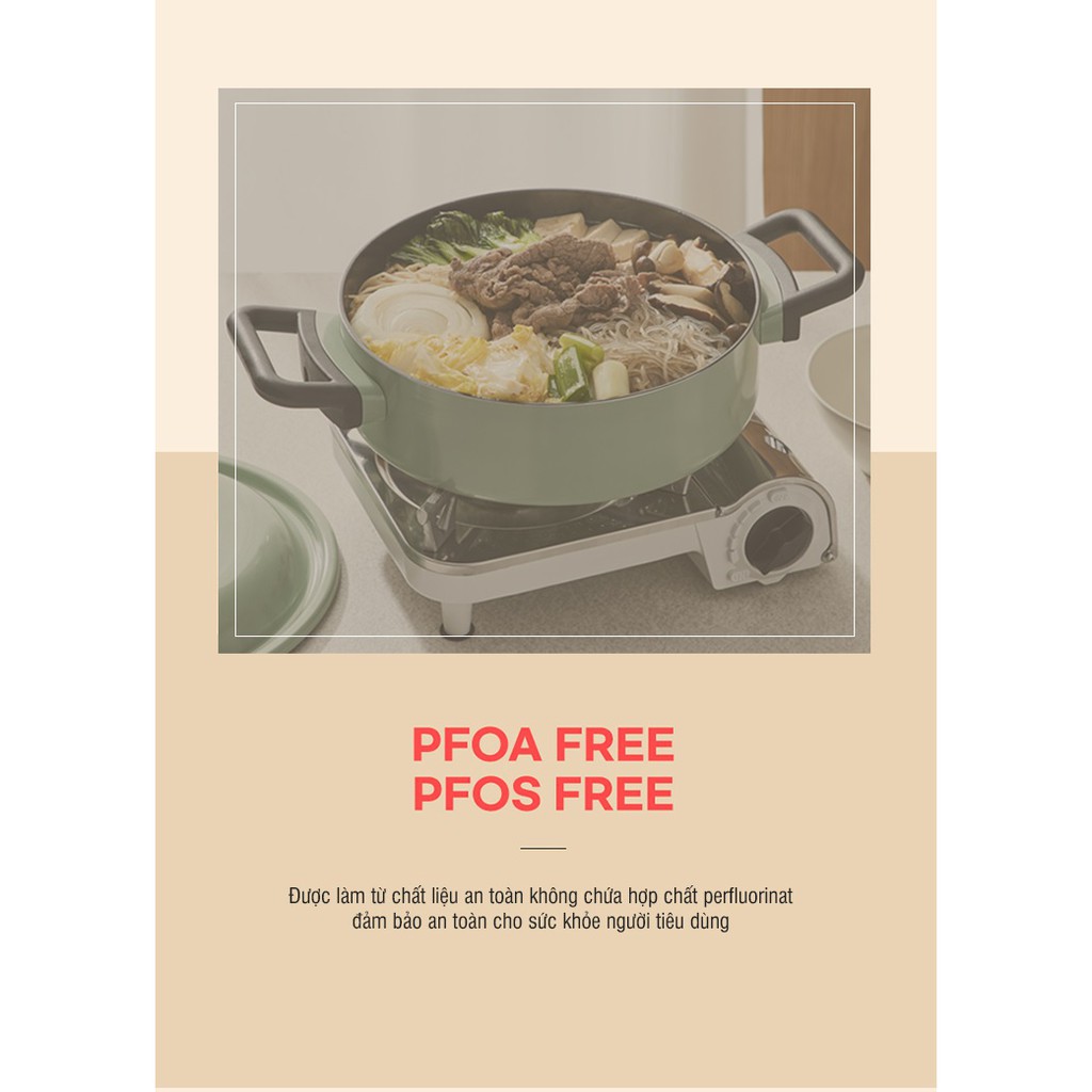 Được làm từ chất liệu an toàn không chứa hợp chất perfluorinat đảm bảo an toàn cho sức khỏe người tiêu dùng
