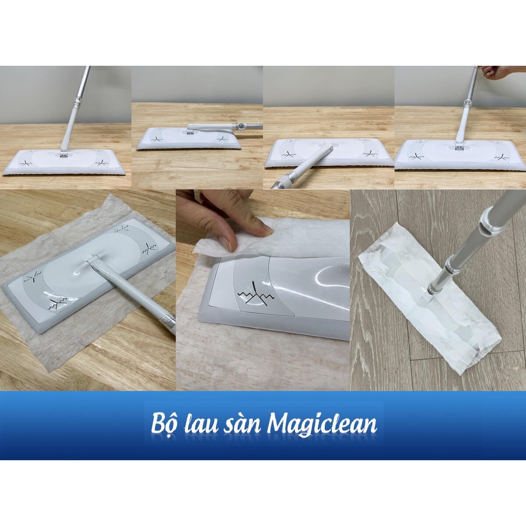 + Giẻ lau ướt Magiclean thay thế cây lau nhà, vệ sinh nhà cửa sạch sẽ, loại bỏ vết bẩn cứng đầu, tieu diet vi khuan bao ve suc khoe.