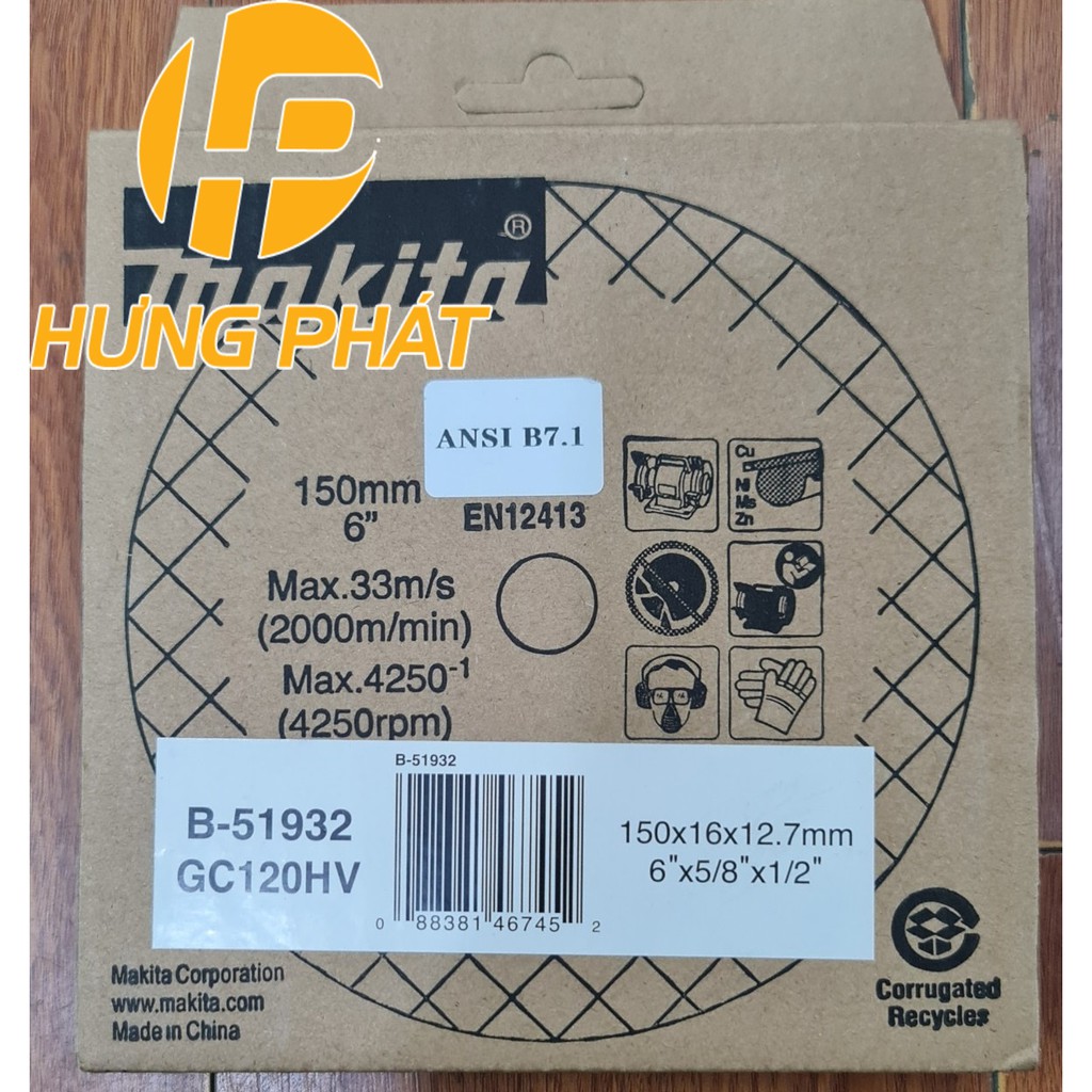 Đá mài 2 đá tinh Makita B-51932 150mm ( cho máy GB602)Độ mịn: 120