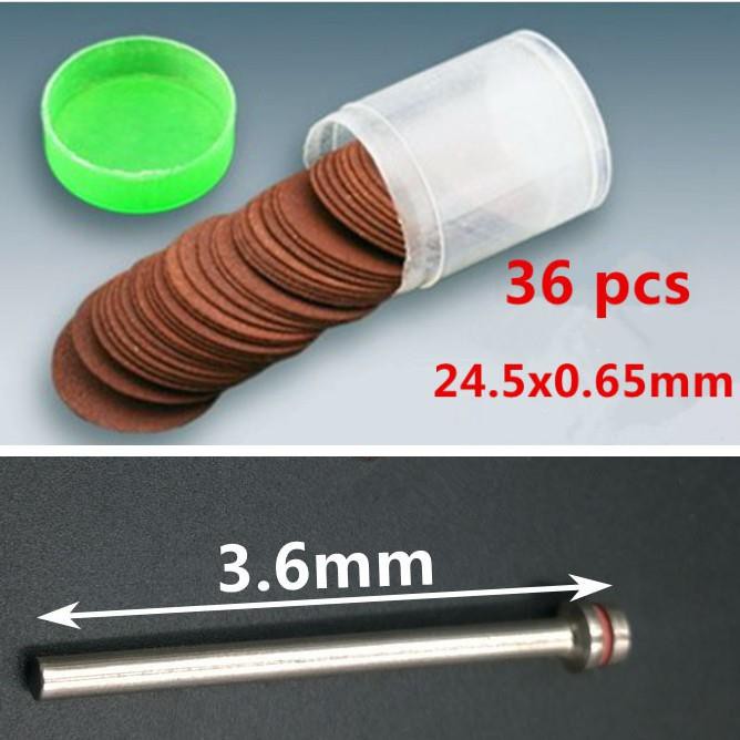 Quy cách đá mài: 24.5 x 0.65 mm, đường kính trong:2mmđá mài: 36 miếng/hộp