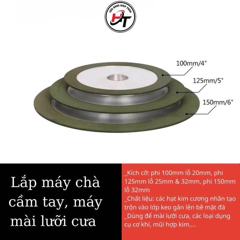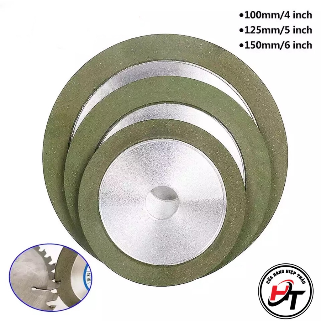 Đá mài hợp kim đĩa chuyên mài lưỡi cưa 100mm 125mm 150mm Kim Khí Hiệp Thảo tặng kèm lót lỗ nhựa