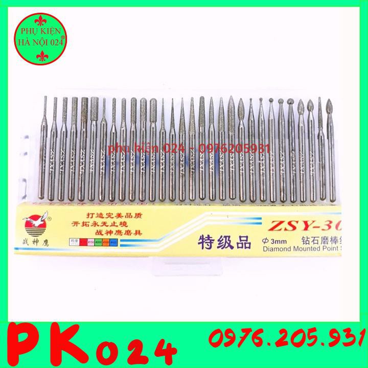 Bộ Mài Kim Cương 30 Chi Tiết ,Mũi Khắc Kim Cương ,Mũi Mài Kim Cương Siêu Chắc Siêu Cứng Cao Cấp ZSY-30