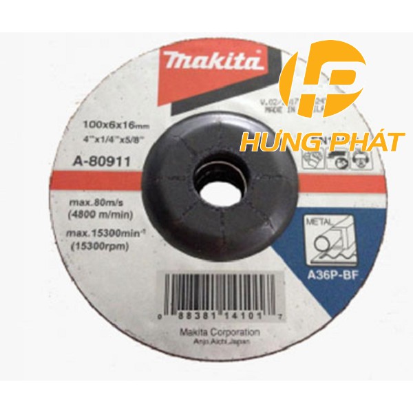 Đá mài Makita A-80911 100x6x16Đường kính đá: 100mm