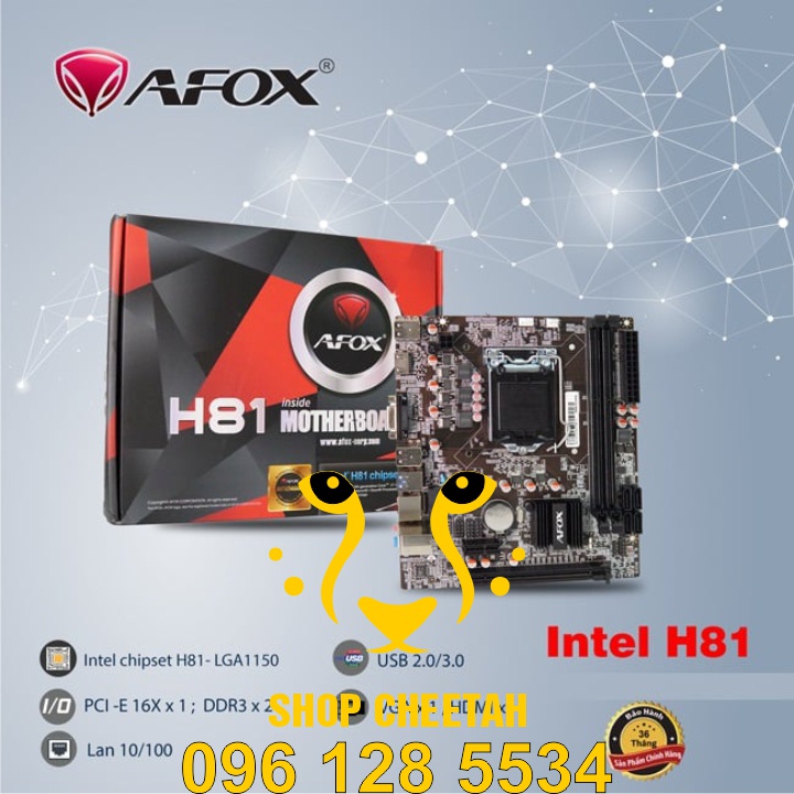 Main Afox H81 ( LGA1150 ) – Chính hãng – Bảo hành 2 năm – Hỗ trợ Chip Intel socket 1150 – Bo mạch chủ máy tínhTHÔNG TIN SẢN PHẨM: