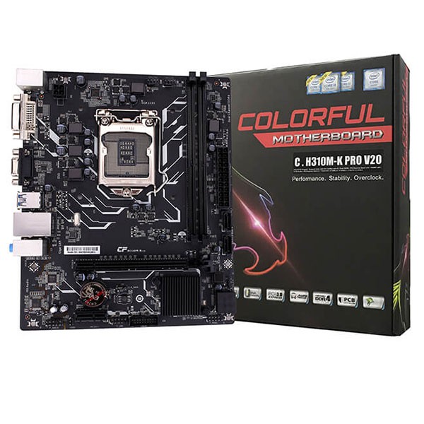 Main Colorful C.H310M-K PRO V20 (Chipset Intel H310/ Socket LGA1151/ VGA onboard)Mới đây, công ty TNHH công nghệ Colorful đã chính thức công bố về dòng sản phẩm bo mạch chủ sử dụng Chipset H310, hỗ trọ bộ vi xử lý Intel thế hệ thứ 8 Coffee Lake. Bo mạch chủ C.H310-K Pro V20, được thiết kế hướng tới đối tượng người dùng phổ thông, những người không quá cần tới những tính năng cao cấp mà chỉ quan tâm đến hiệu năng từ dòng vi xử lý mới nhất.