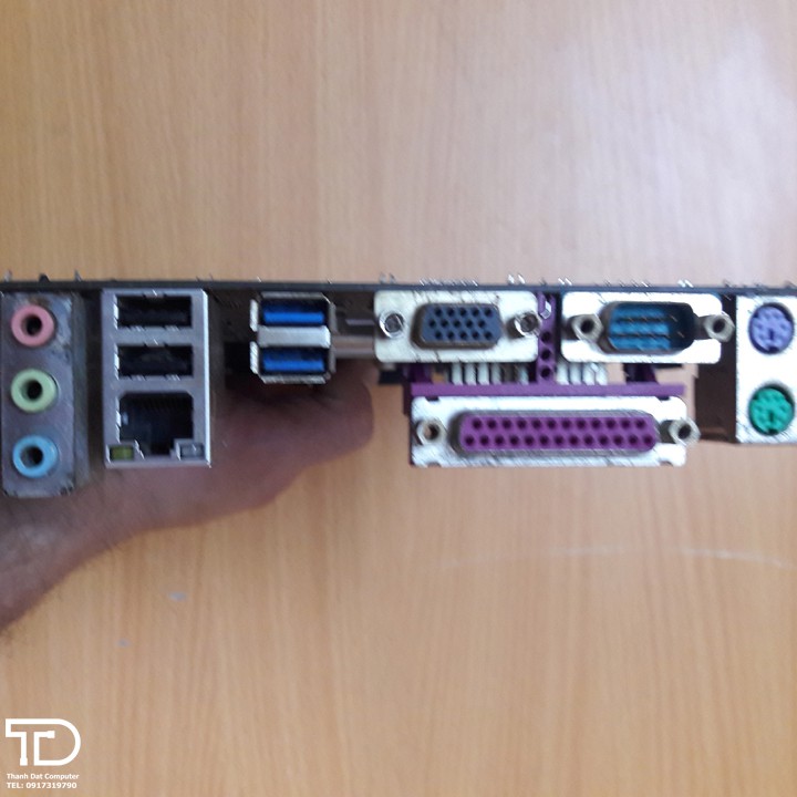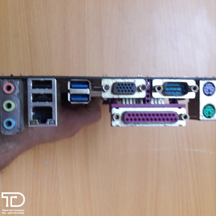 1 x PS/2 mouse port/1 x PS/2 Keyboard port/1 x parallel port/1 x serial port/1 x D-Sub port/2 x USB 3.0/2.0 ports/2 x USB 2.0/1.1 ports/1 x RJ-45 port/3 x audio jacks (Line In, Line Out, Mic In)