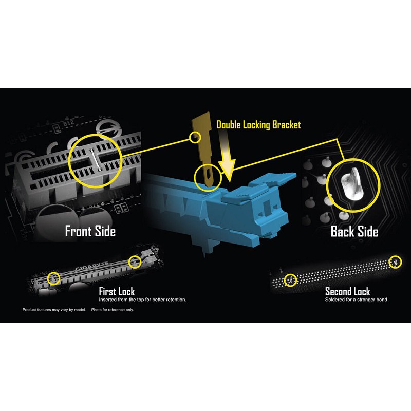 Ngoài ra, khe cắm PCI trên mainboard cũng đươc gia cố để chịu lực tốt hơn, hỗ trợ việc sử dụng card màn hình có khối lượng lớn.