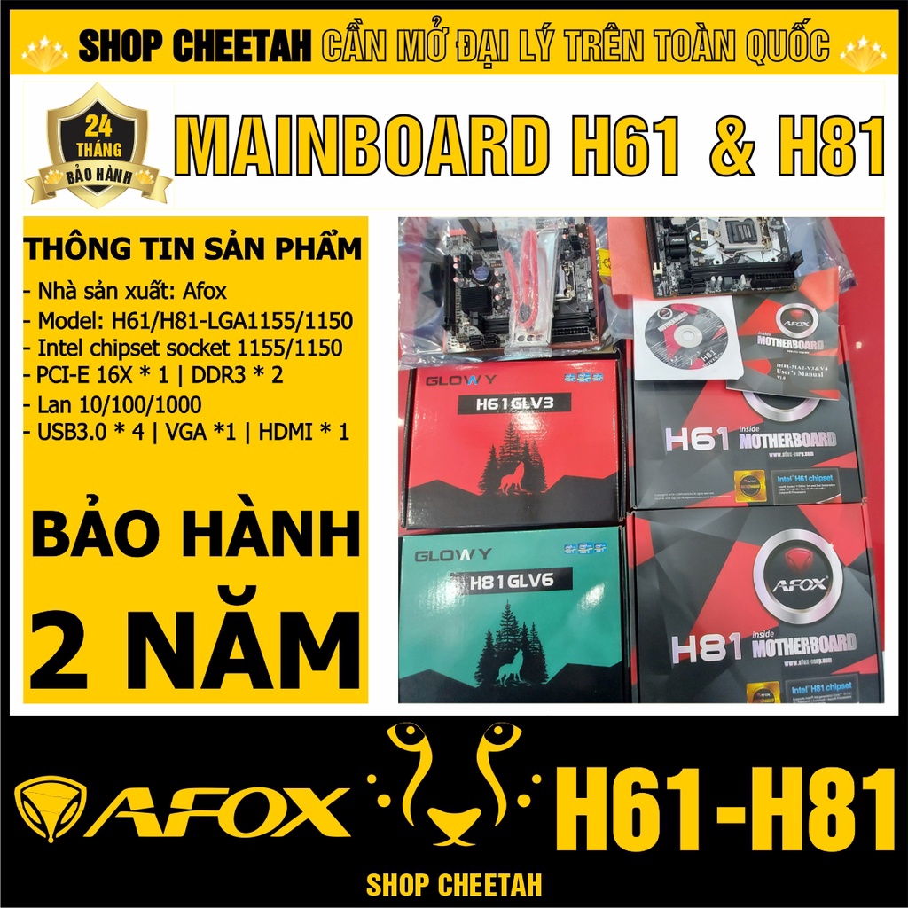 Main H61 và H81 ( LGA1155 và LGA1150 ) – Chính hãng – Bảo hành 2 năm – Hỗ trợ Chip Intel socket 1150 – Bo mạch chủ máy tính – Thương hiệu Afox / GlowyTHÔNG TIN SẢN PHẨM:
