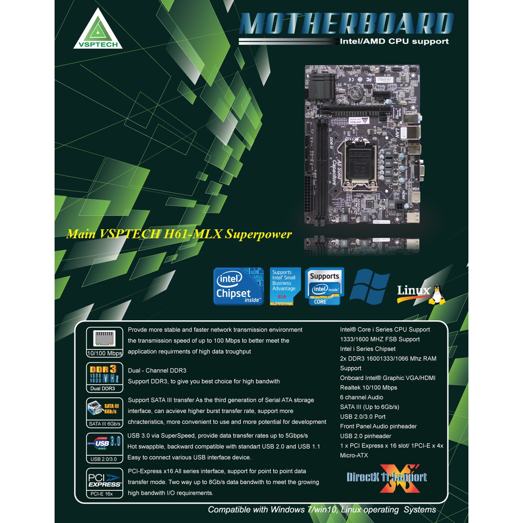 Máy tính & Laptop > Linh Kiện Máy Tính > Mainboard - Bo Mạch Chủ || Main VSPTECH H61-MLX SuperpowerCòn hàng