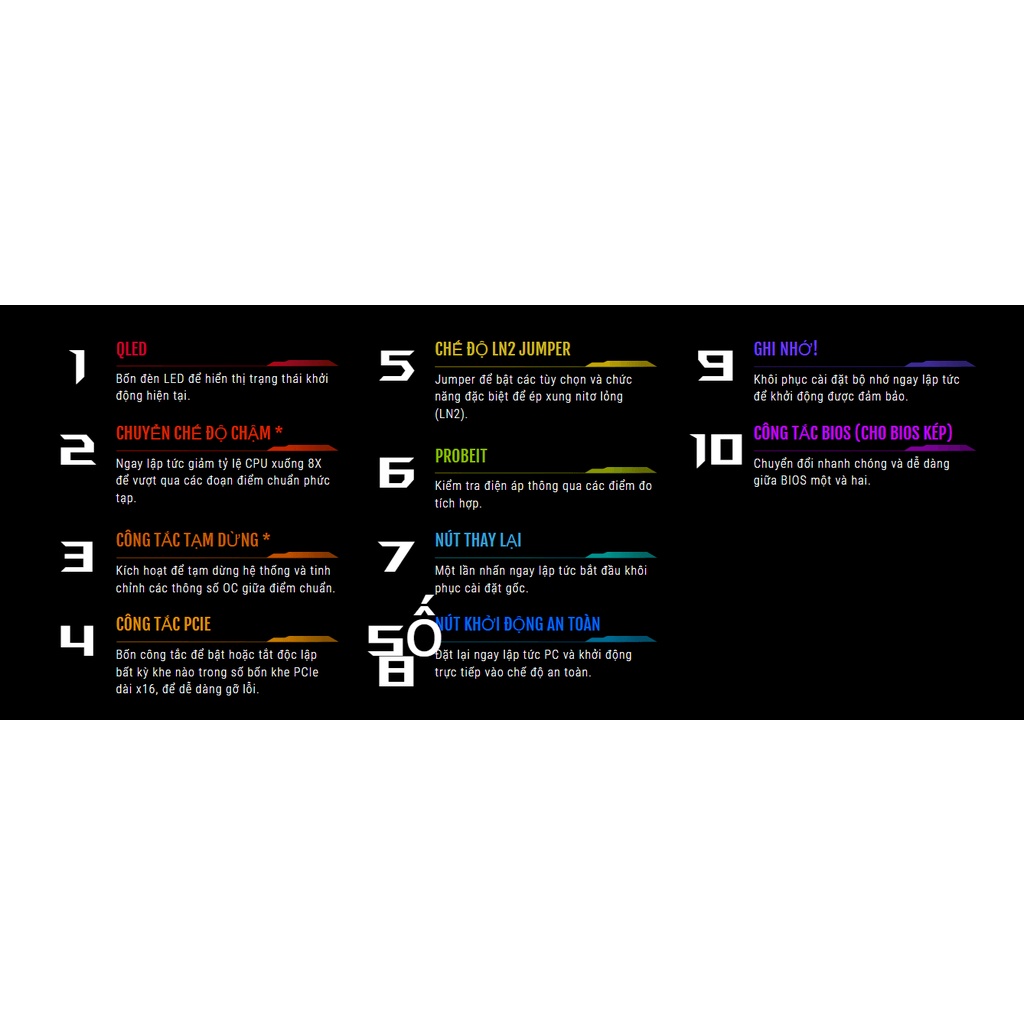 ROG Maximus X Apex bao gồm bộ công cụ dành cho người ép xung với các điều khiển cấp phần cứng để hỗ trợ trải nghiệm ép xung của bạn. Dual BIOS của bo mạch chủ cho phép bạn thử nghiệm với các phiên bản phần sụn khác nhau và cung cấp một đường dẫn để khôi phục trong trường hợp một phần mềm bị hỏng và công tắc tích hợp cho phép bạn dễ dàng thay đổi giữa BIOS thứ nhất và thứ hai. Bộ công cụ của người ép xung cũng bao gồm một công tắc Tạm dừng để tạm dừng hệ thống và bốn công tắc PCIe để chuyển đổi khe cắm nhanh chóng. Các công cụ khác bao gồm các nút Khởi động an toàn và Thử lại, một bộ chuyển chế độ LN2 để hỗ trợ ĐĂNG ở nhiệt độ dưới 0 và công tắc chuyển chế độ Chậm. Kết hợp lại, chúng tiết kiệm thời gian nhanh chóng và dễ dàng được thiết kế để giúp bạn phá vỡ nhiều kỷ lục hơn.