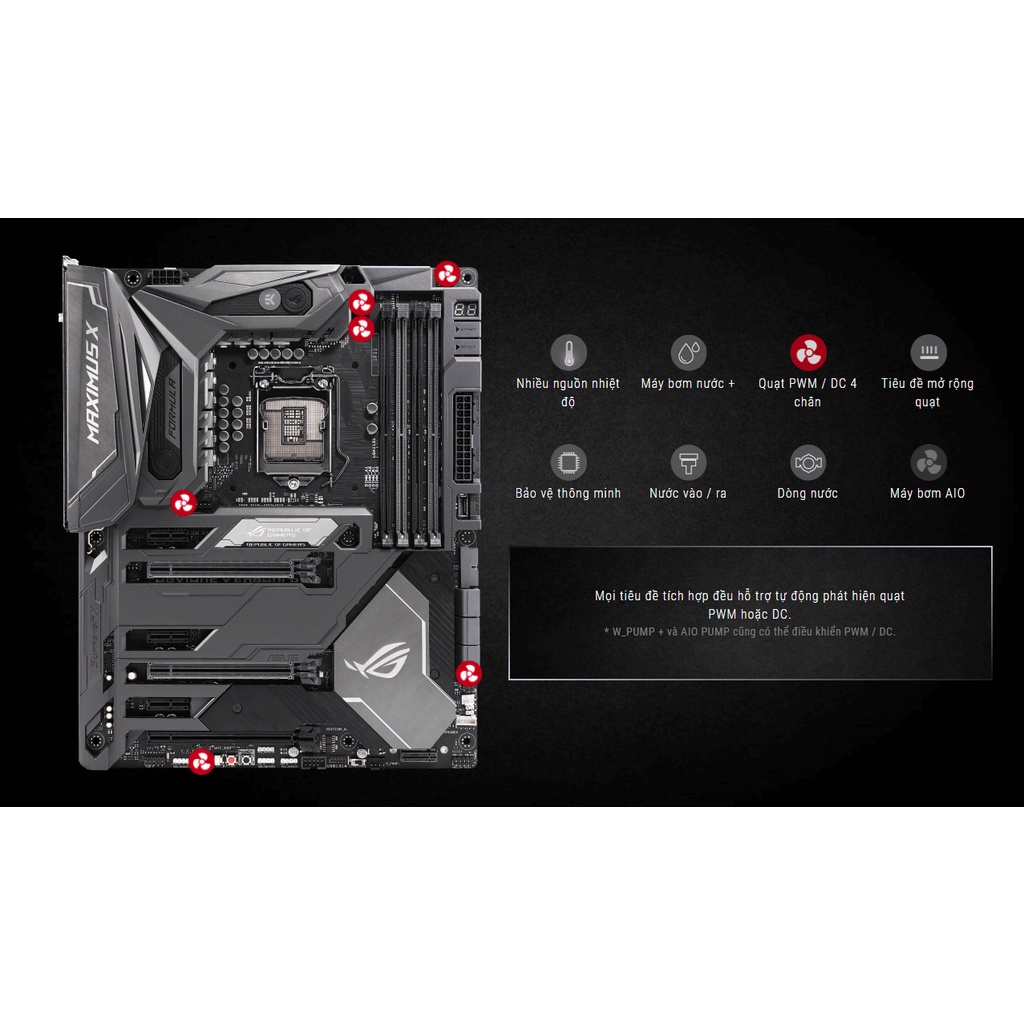 ROG Maximus X Formula có các tính năng điều khiển làm mát toàn diện nhất từ trước đến nay, có thể cấu hình thông qua Fan Xpert 4 hoặc UEFI BIOS: