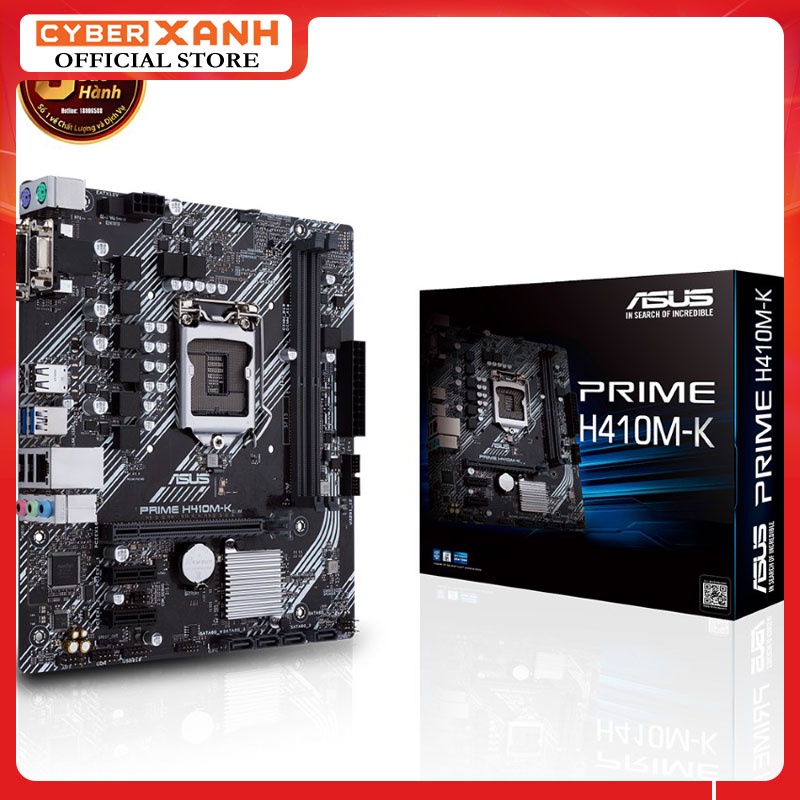 Giới thiệu mainboard ASUS PRIME H410M-KMainboard ASUS PRIME H410M-K là bo mạch chủ mic-ATX Intel® H410 (LGA 1200) có hỗ trợ M.2, 64GB DDR4 2933 MHz, DVI, D-Sub, USB 3.2 Gen 1, SATA 6 Gbps...