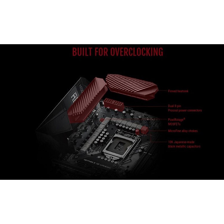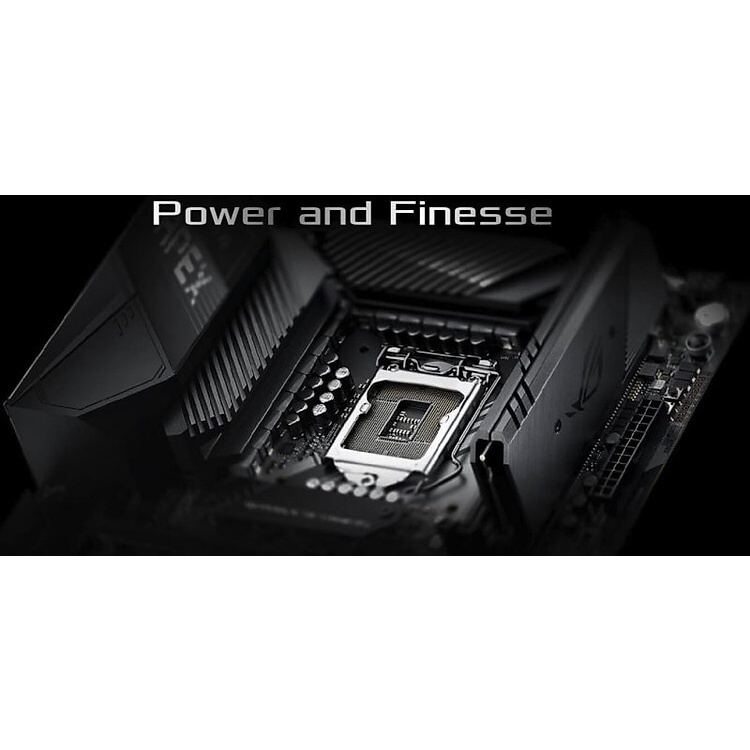 Khe cắm trong: 2 x PCIe 3.0 x16 (Single at x16, dual at x8/x8), 1 x PCIe 3.0 x16, 6 x SATA3, 2 x ROG DIMM.2. Support RAID 0, 1, 5. Intel® Optane™ Memory Ready.
