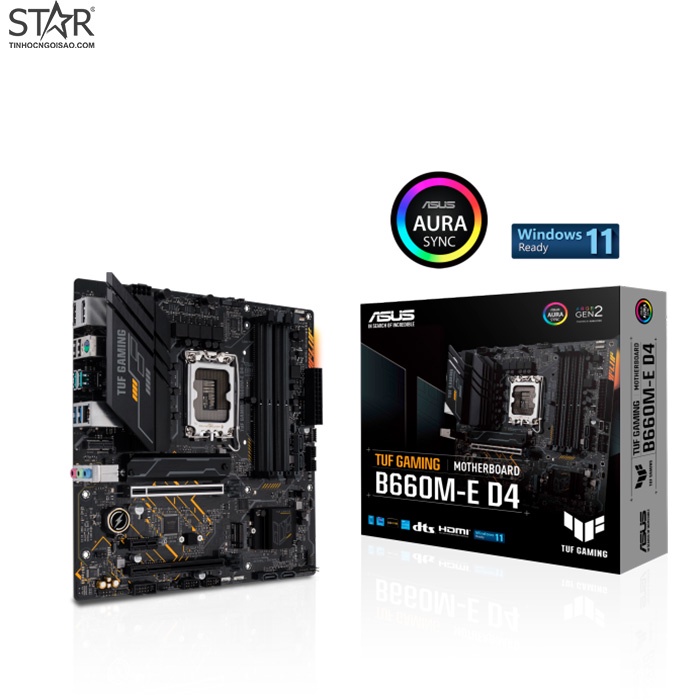 Asus TUF GAMING B660M-E D4 là dòng bo mạch chủ chipset B660 tầm trung, phù hợp với các vi xử lý Pentium, Celeron,i3 & i5 hoặc i7,i9 non K thế hệ Alder Lake.