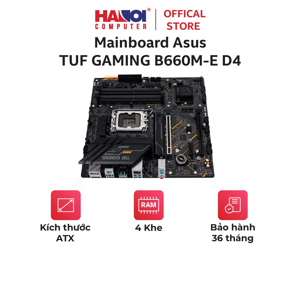 Máy tính & Laptop > Linh Kiện Máy Tính > Mainboard - Bo Mạch Chủ || Mainboard Asus TUF GAMING B660M-E D4 (Intel B660, LGA 1700, 4 khe RAM, M-ATX)Còn hàng