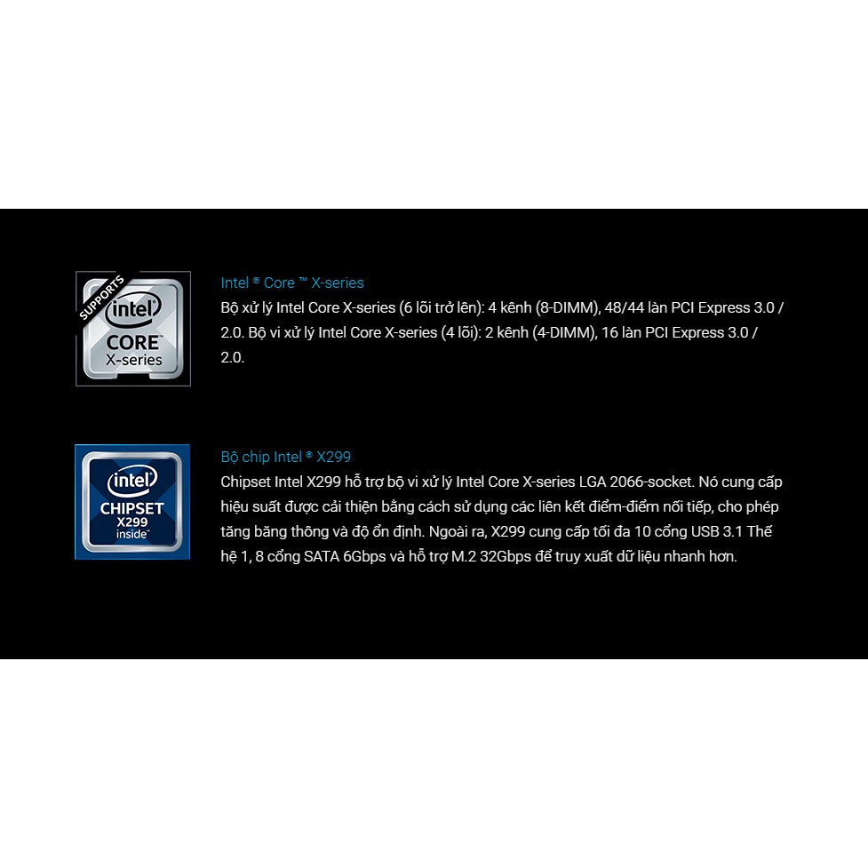 Hỗ trợ CPU: Intel Socket 2066 Core X-Series Processors