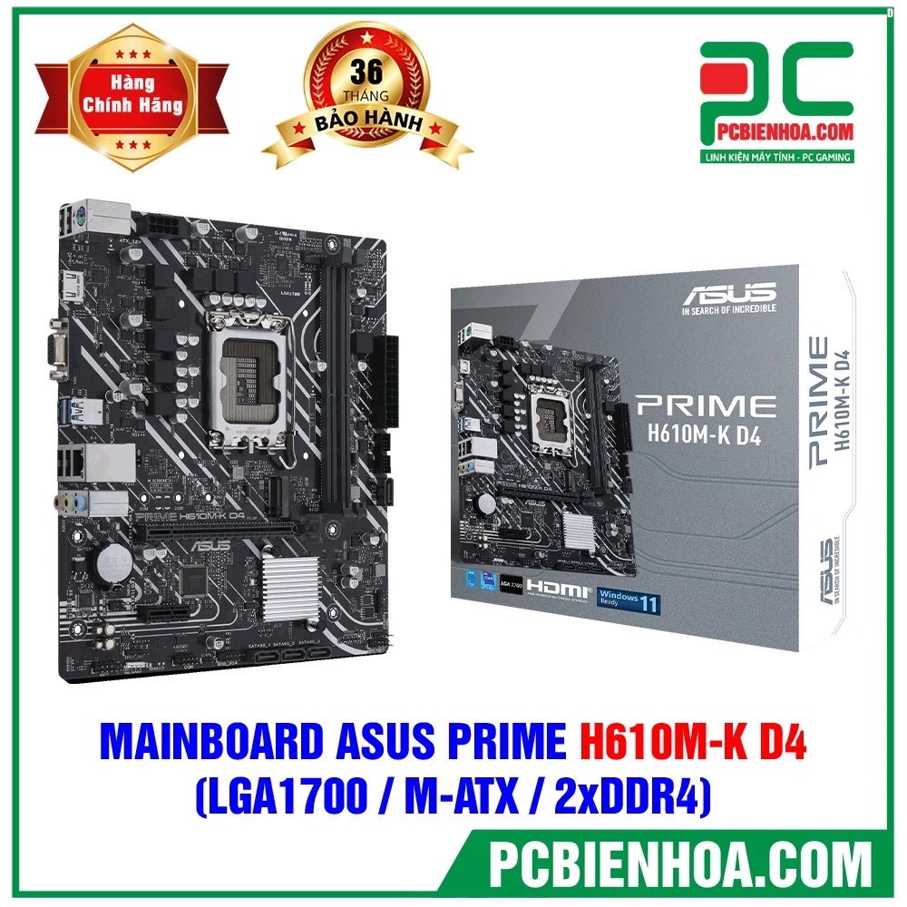 Giới thiệu MAINBOARD BO MẠCH CHỦ ASUS PRIME H610MK D4 ( LGA1700 / MATX / 2XDDR4 ) CHÍNH HÃNG 36T
