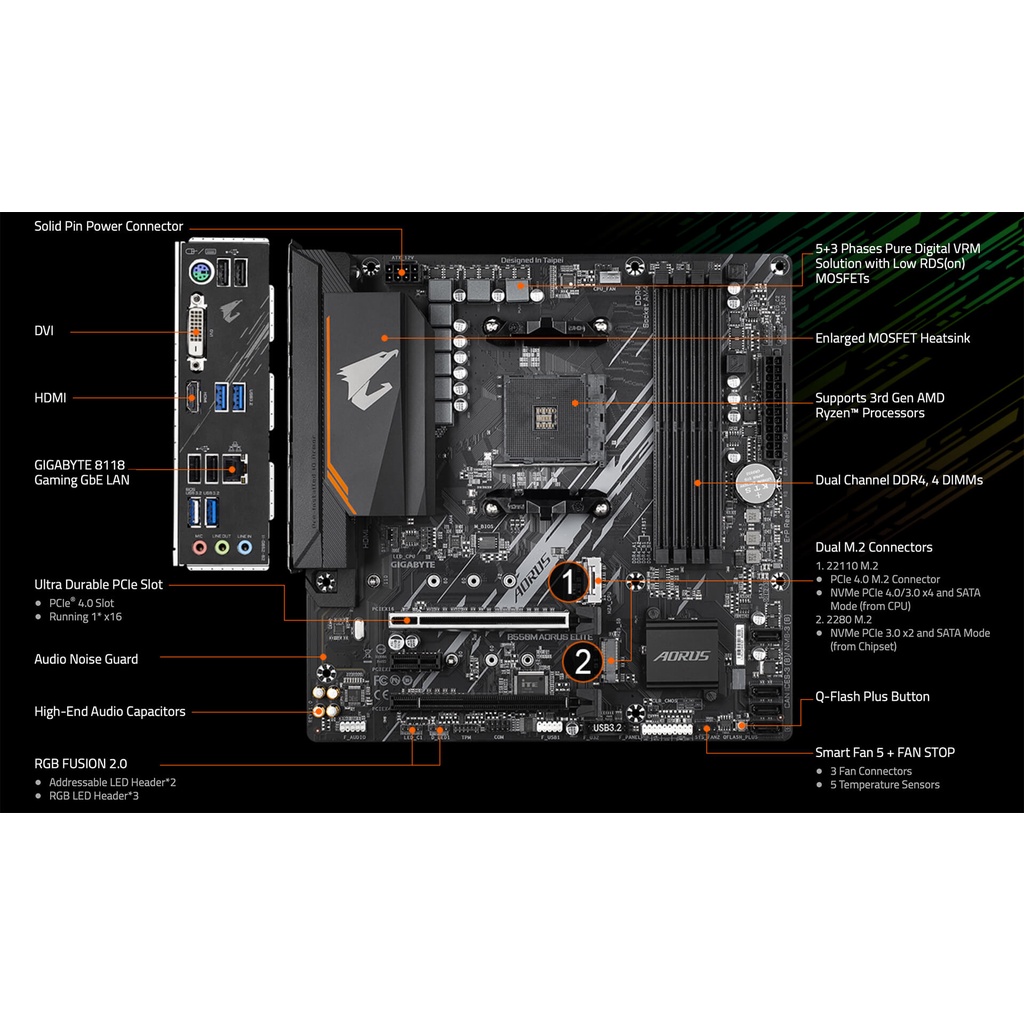 Giới thiệu Mainboard bo mạch chủ Gigabyte B550M Aorus Elite (AM4, 4xDDR4, mATX) new chính hãng