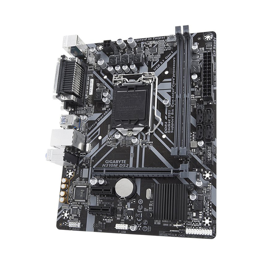 Mainboard Gigabyte H310M-DS2 là sản phẩm thuộc phân khúc bình dân của GIGABYTE, H310M DS2 được trang bị chipset H310 cho những hệ thống Coffee Lake giá rẻ mà vẫn đảm bảo được một hiệu năng tốt trên giá thành. CPU G5500 và I3 8100 là hai nhân tố được khuyến khích đi cùng Chipset này nhất do độ tương thích phân khúc khá cao.